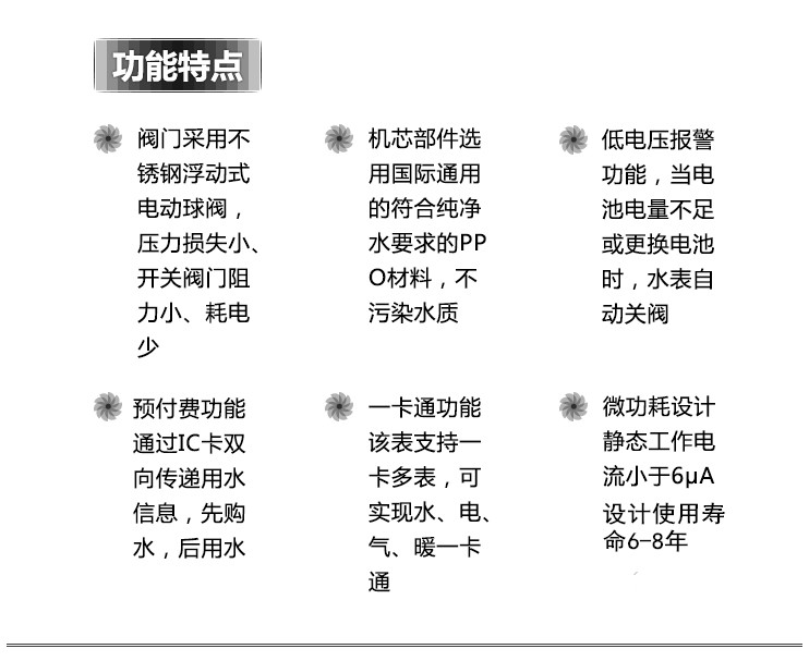 1、預(yù)付費(fèi)功能通過IC卡雙向傳遞用水信息,先購水,后用水