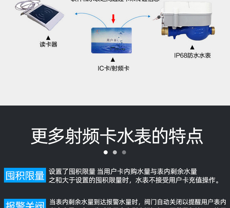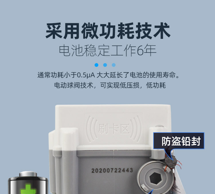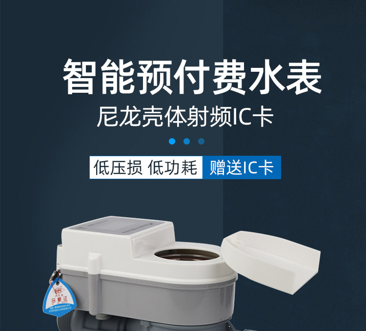 智能預付費尼龍IC卡家用水表在成熟可靠的機械水表基礎加裝電子模塊 ,同時進行用水數據存儲,實現用戶先付費后用水,具有欠費缺電磁攻擊等關閥報警功能