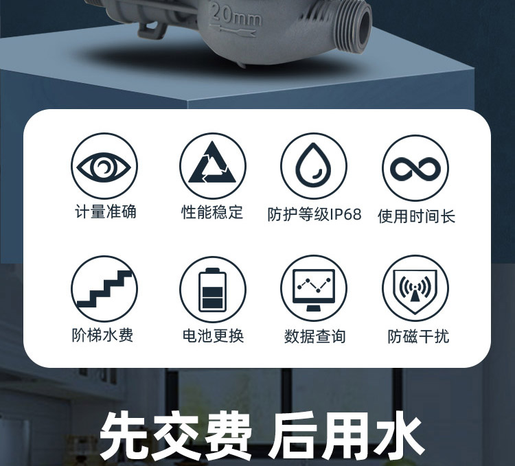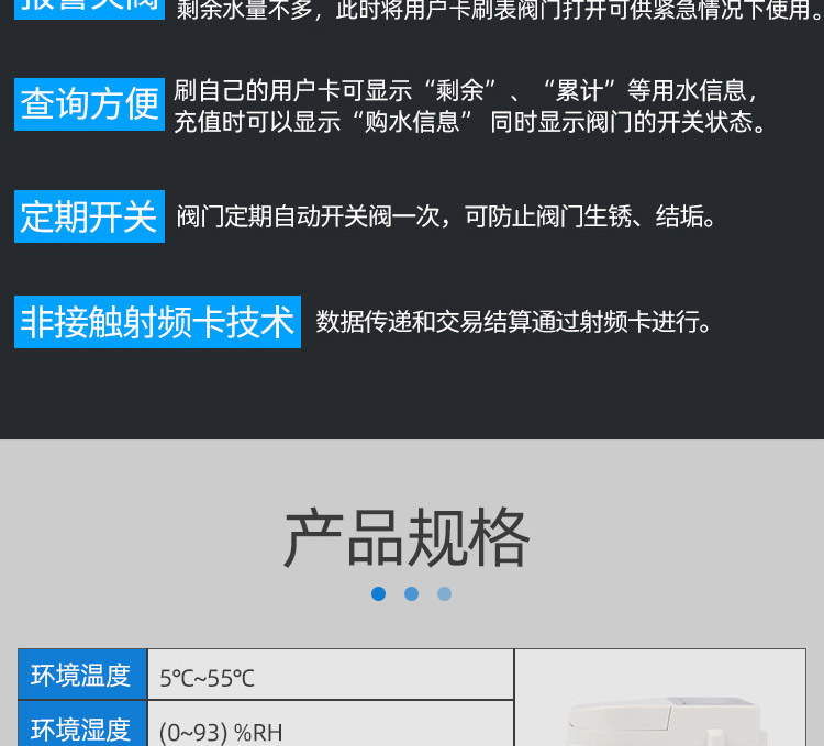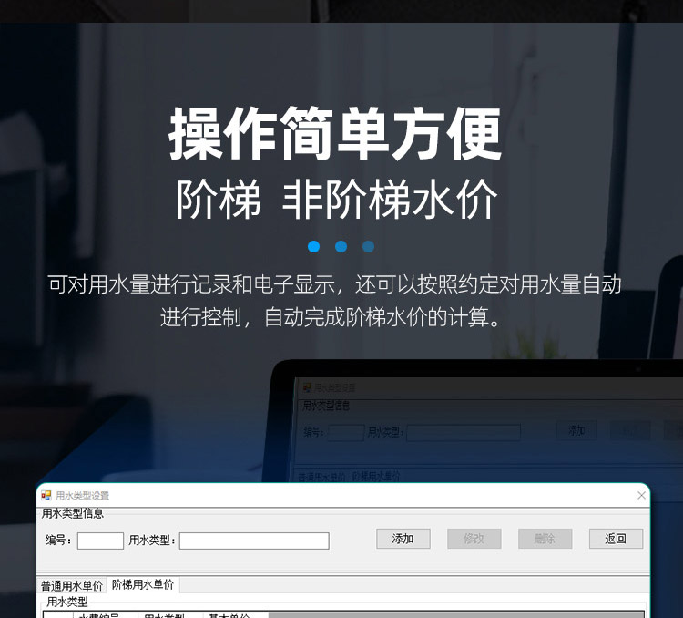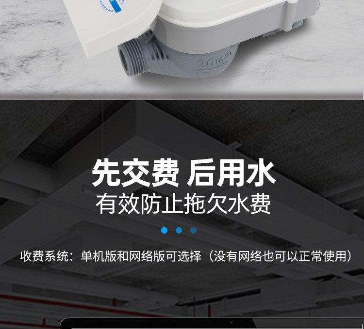 3、可對用水量進行記錄和電子顯示,還可以按照約定對用水量自動進行控制,自動完成階梯水價的計算。